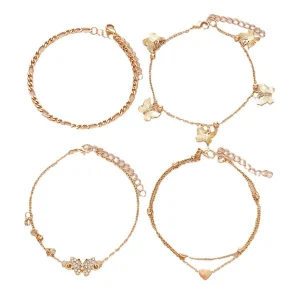 4-Piece Vacation Beach Butterfly Layered Anklet Set – Creative Beaded & Heart Chain Design