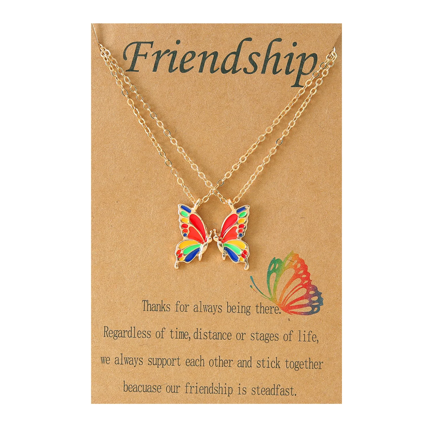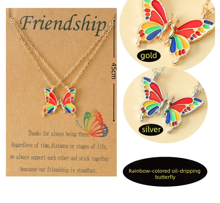 Be the first to review “Friendship Necklace – Colorful Gold Butterfly 2-Piece Set, Alloy Enamel Butterfly Collarbone Chain, Women’s Accessory” Cancel reply