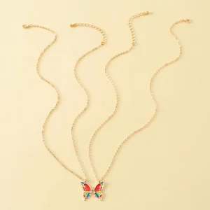 Friendship Necklace – Colorful Gold Butterfly 2-Piece Set, Alloy Enamel Butterfly Collarbone Chain, Women’s Accessory