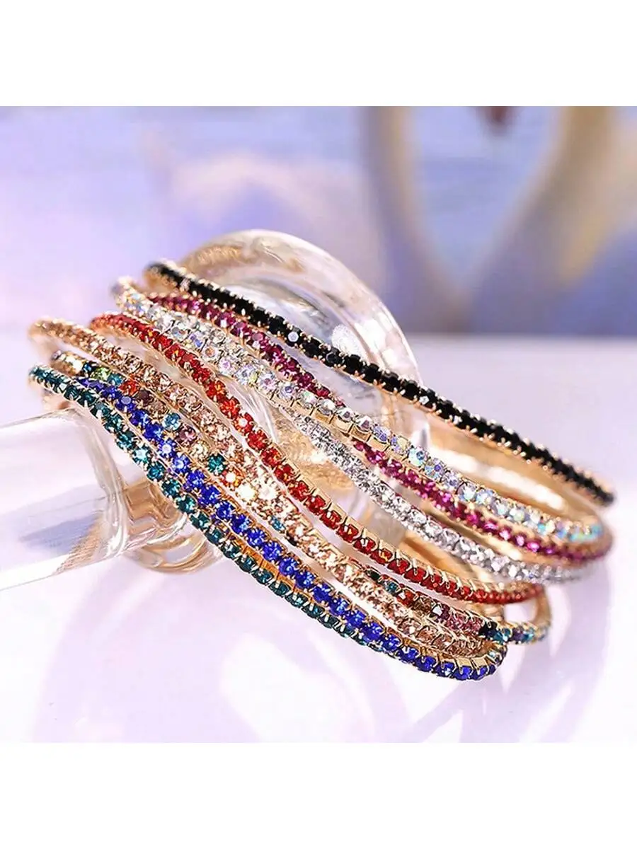 New multi-color rhinestone elastic simple full diamond square women’s bracelet fashion jewelry gift fashion accessories creative