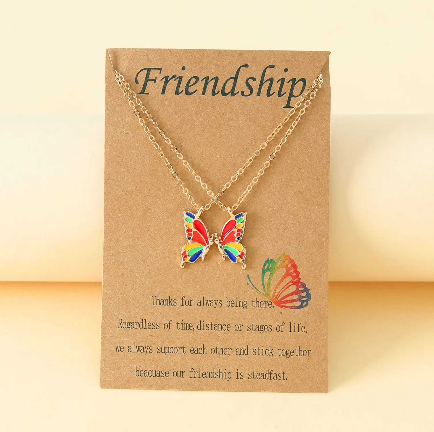Be the first to review “Friendship Necklace – Colorful Gold Butterfly 2-Piece Set, Alloy Enamel Butterfly Collarbone Chain, Women’s Accessory” Cancel reply
