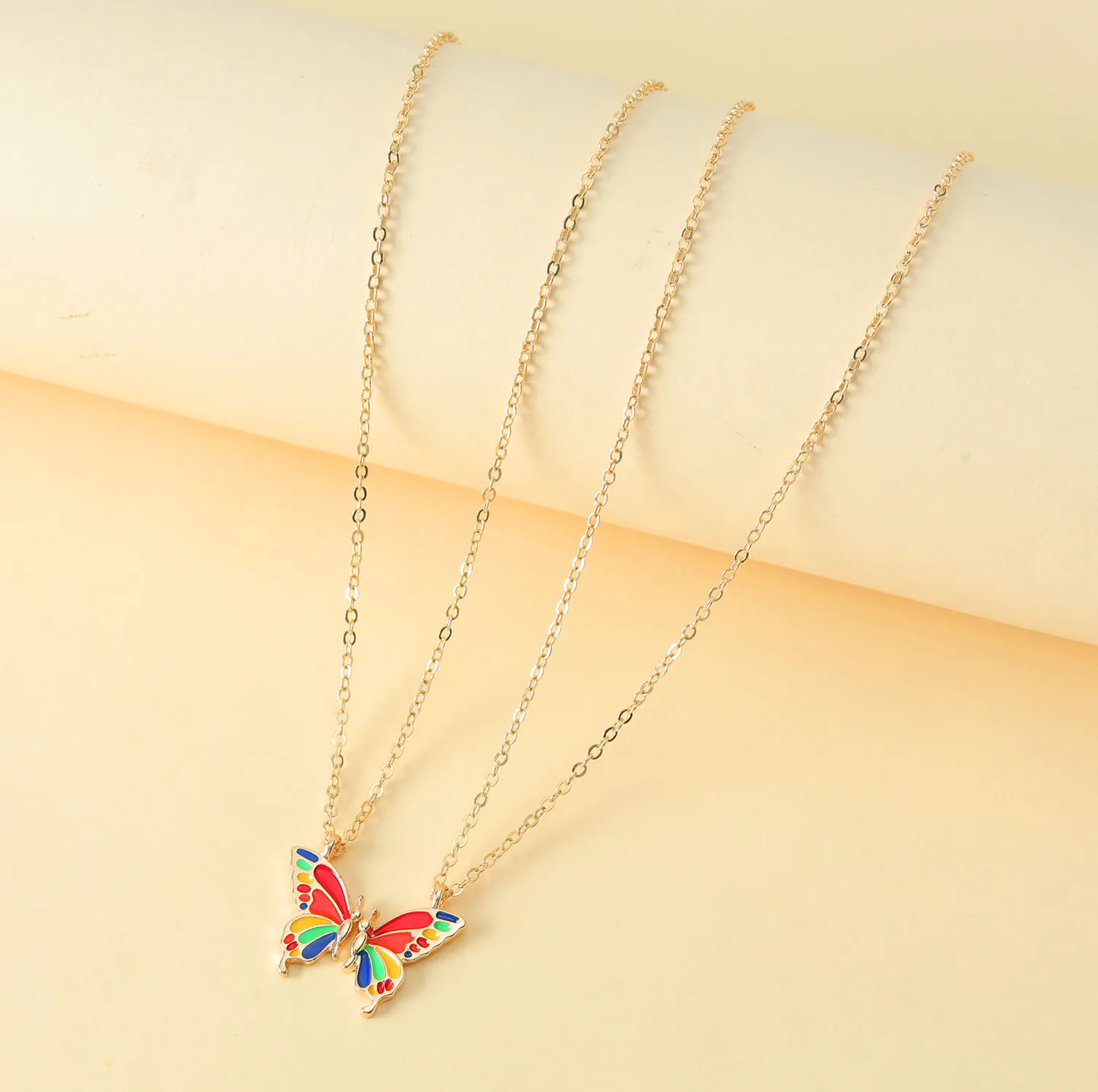 Friendship Necklace – Colorful Gold Butterfly 2-Piece Set, Alloy Enamel Butterfly Collarbone Chain, Women’s Accessory