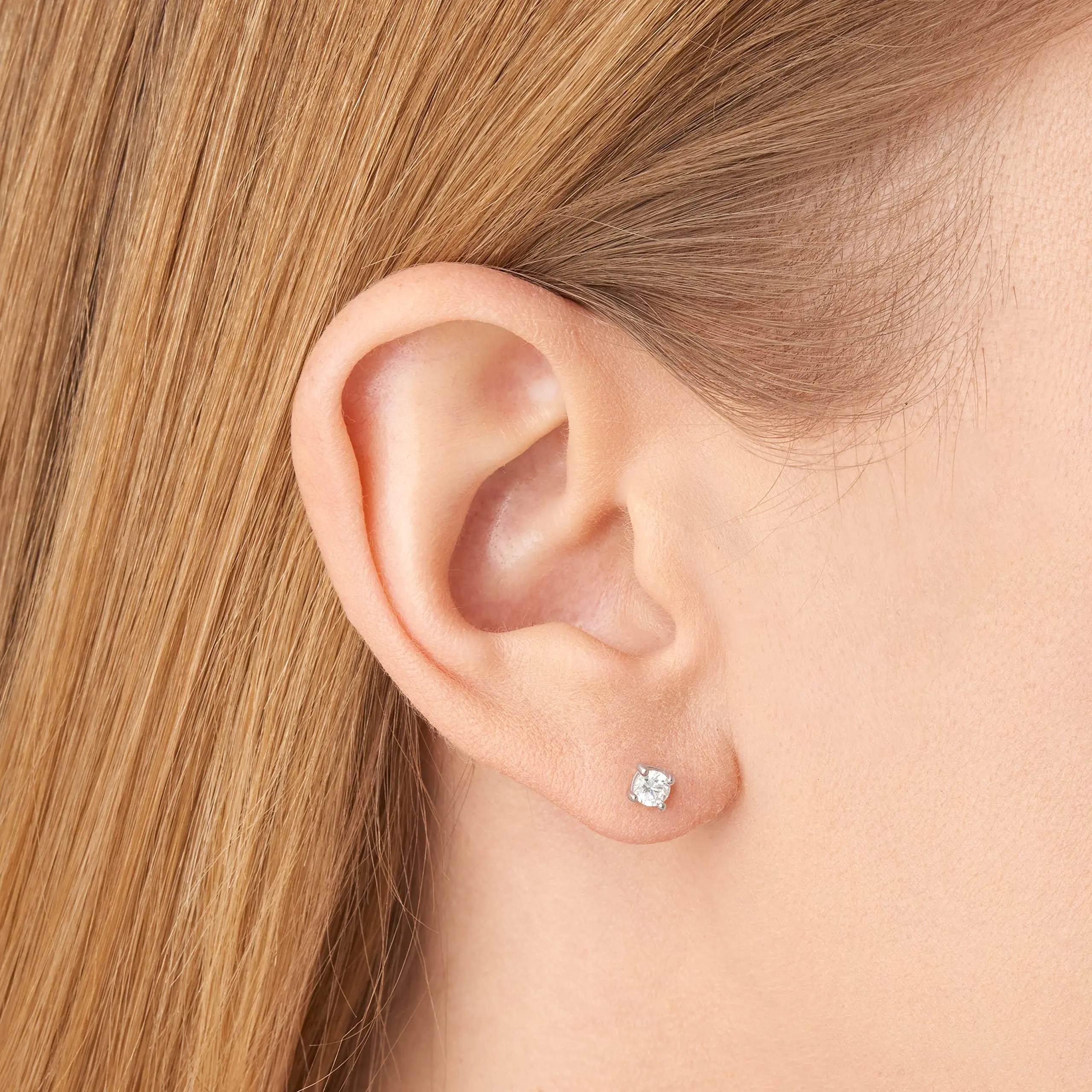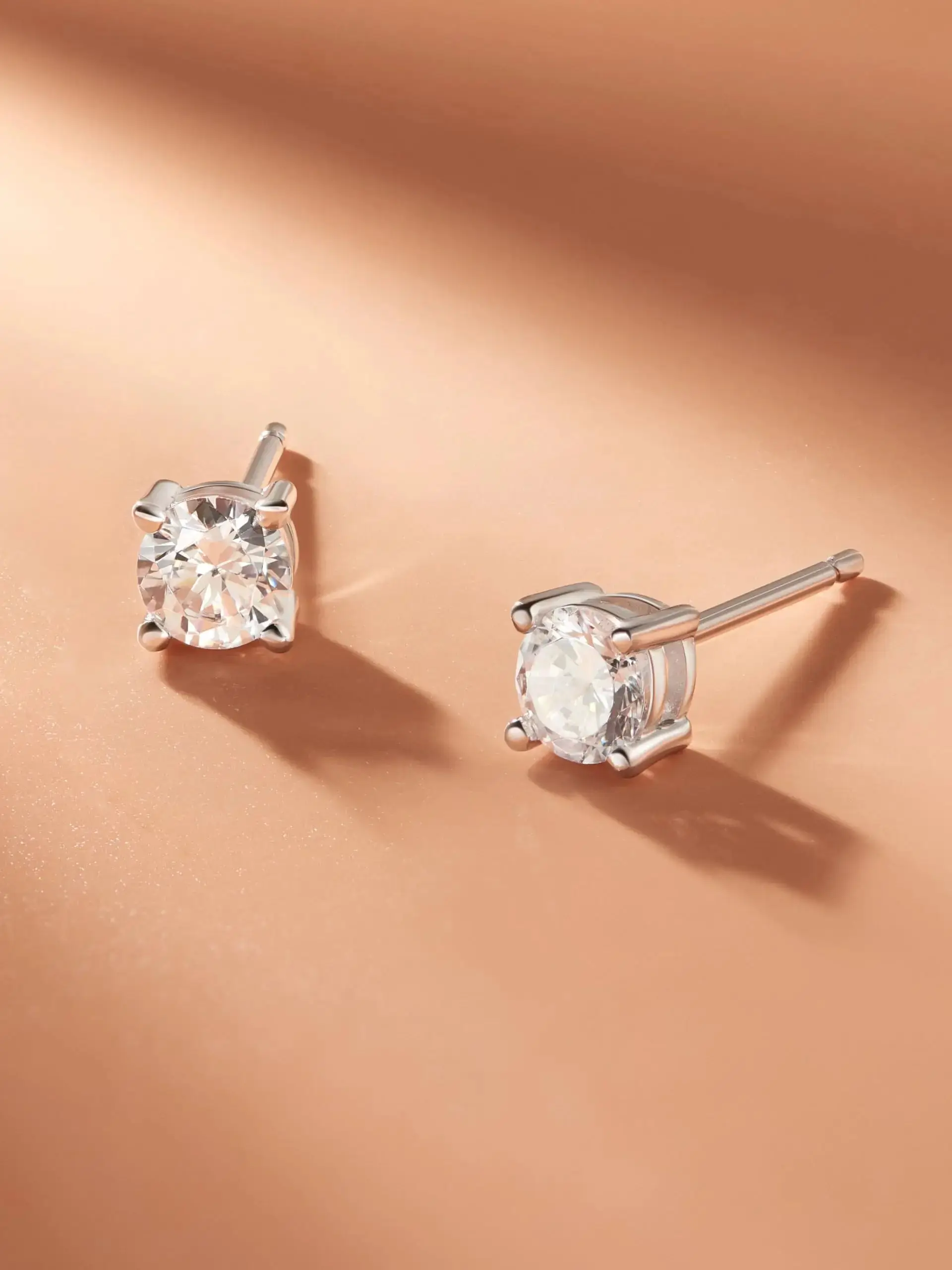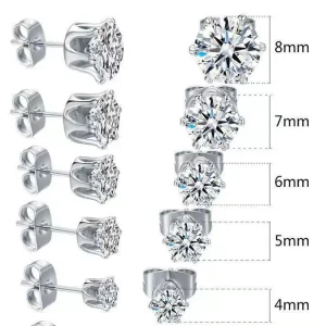 Unisex cubic zirconia princess-cut moissanite stud earrings, butterfly clasp style.